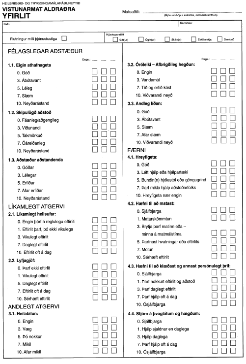 4. Að meta vistunarþörf aldraðra, sbr. II. kafla.
