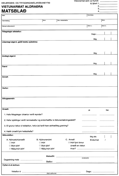Á matsblað skal jafnframt skrá hvenær mat er gert og fari endurmat ekki fram innan 18 mánaða fellur vistunarmatið úr gildi.