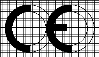 Einstakir hlutar CE-merkingarinnar skulu í megindráttum hafa sömu lóðréttu mál og mega þau ekki vera undir 5 mm.