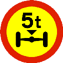 B18.xx Takmarkaður ásþungiÁ merkið skal letra mesta leyfilega þunga á ás með fjórum hjólum. Þyngd áss með tveimur hjólum og þyngd á tví- og þríás skal vera í samræmi við reglur um þyngd ökutækja. Tveir síðustu stafir í númeri tákna tilgreinda þyngd í heilum tonnum. Þannig hefur merkið sem hér er sýnt númerið 18.05. |