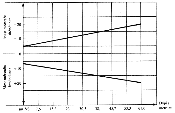 Mótstaða í öndunarbúnaði má aldrei fara yfir eftirfarandi hámark mælt í sentimetrum vatnssúlu (sm VS). |
