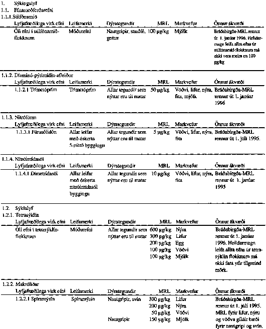 Reglugerð þessi er sett með hliðsjón af tilskipun EEC nr. 2377/90, með síðari breytingum og samkvæmt heimild í lögum nr. 77/1981 um dýralækna og lögum nr. 30/1966 um meðferð, skoðun og mat á sláturafurðum og öðlast þegar gildi.