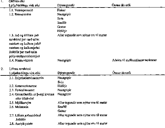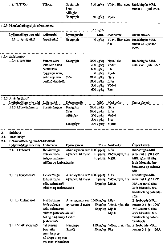 Lyfjafræðilega virk efni sem notuð eru í dýralyf og lokið er að ákveða tímabundið hámark fyrir, skulu skráð í viðauka III.