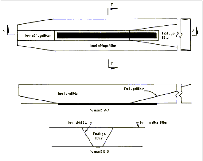 | c) | ná gegnum innri aðflugsflöt, innri skáflöt eða fráflugsflöt; | |