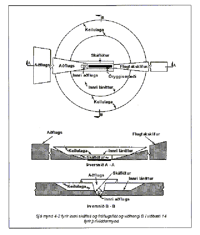 | Aths. 2. – Ætlast er til að notkun vega á athafnasvæðinu sé takmörkuð við notkun flugvallarstarfsfólks og annars viðkomandi fólks með sérstakt leyfi og aðgangur óviðkomandi fólks að byggingum sem almenningur hefur aðgang að sé ekki háður notkun slíkra vega. | ||