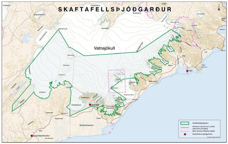 Öræfajökull, frá 20. apríl til 15. september, sunnan línu sem dregin er milli hnitpunktanna 609570,392483 og 620811,392483.